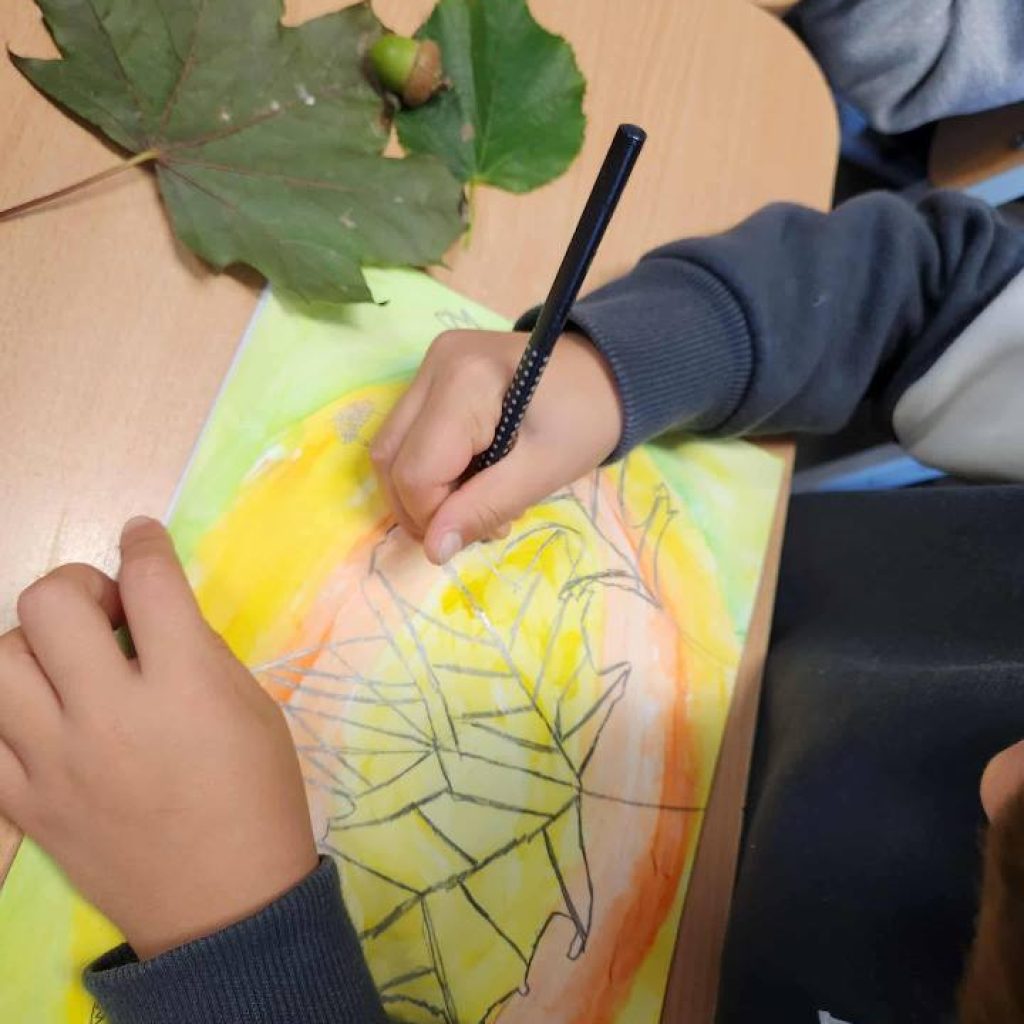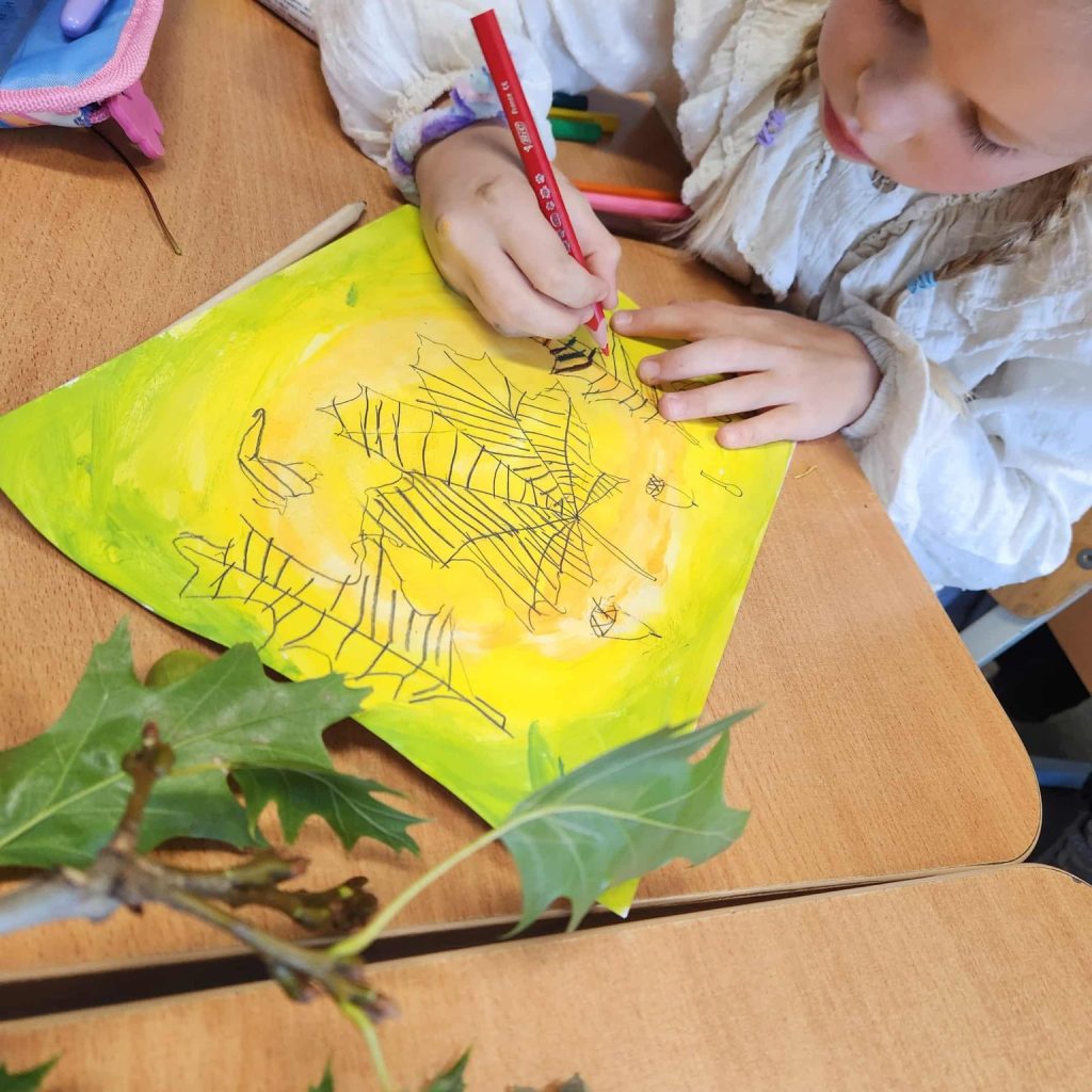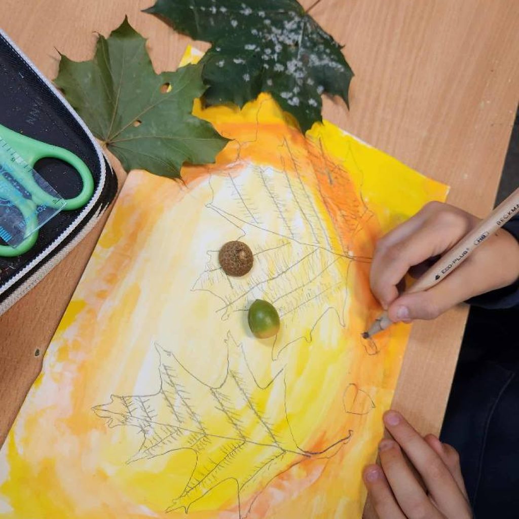 2025 m. spalio 10 d. 1 klasės mokiniams vyko integruota dailės ir gamtos mokslų pamoka „Medžių