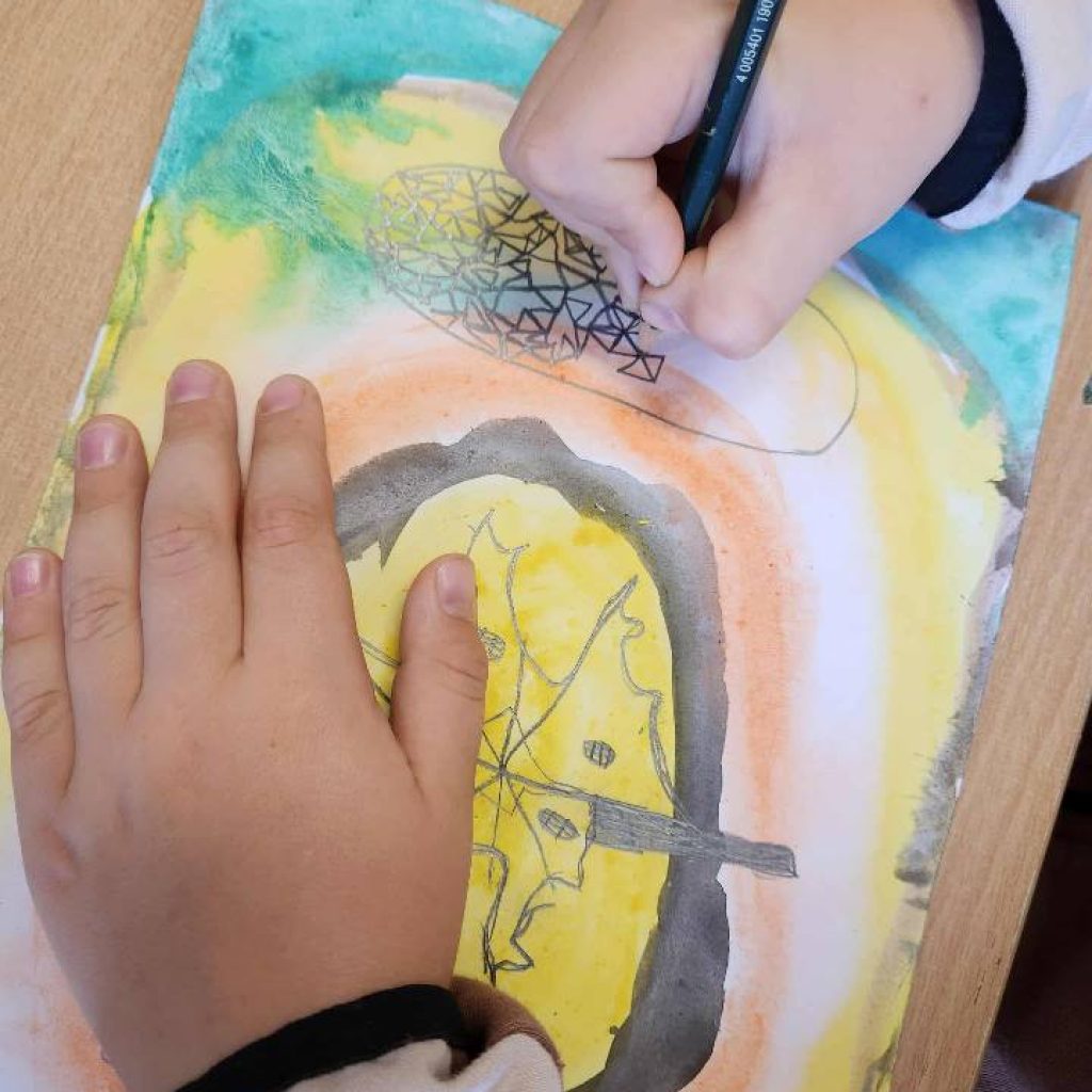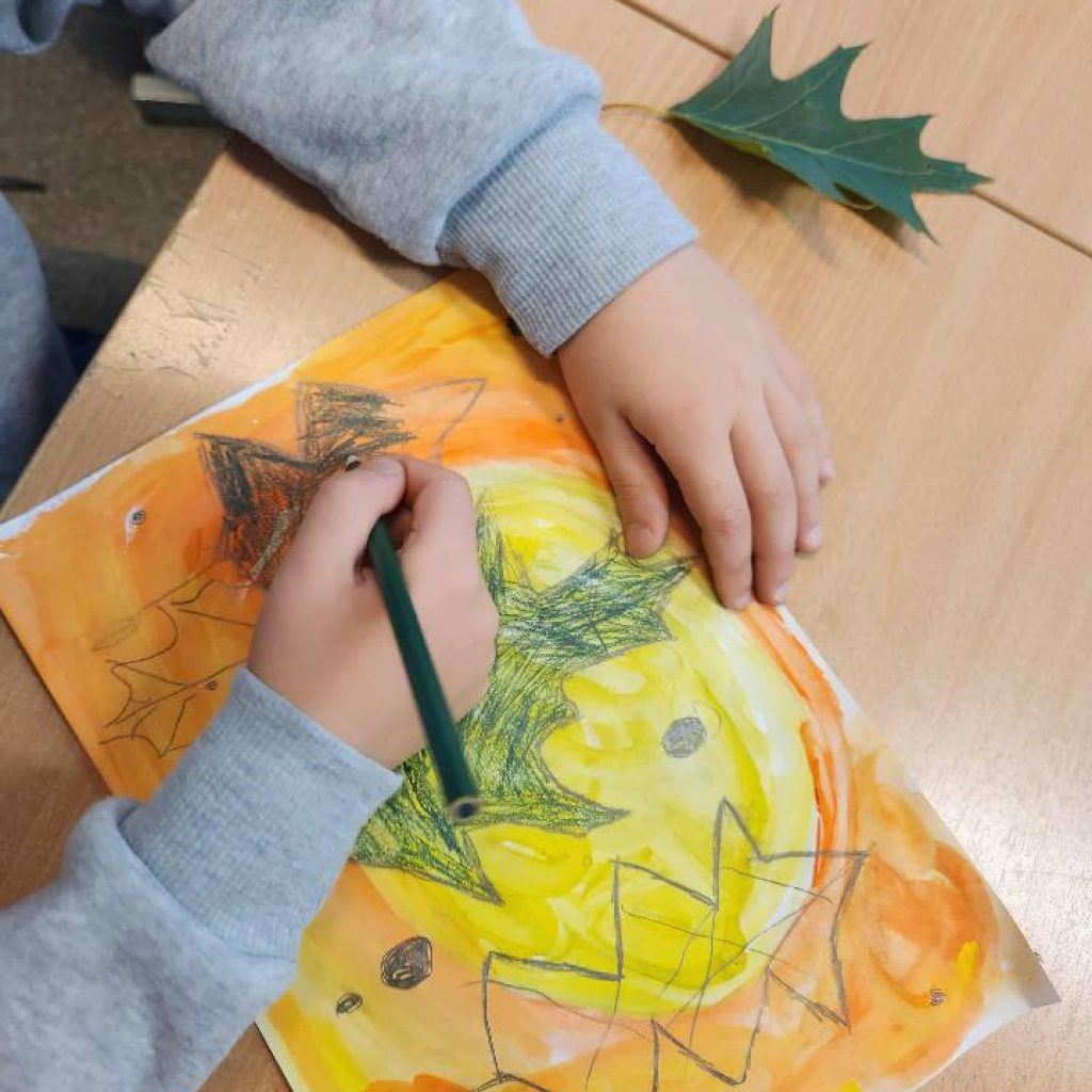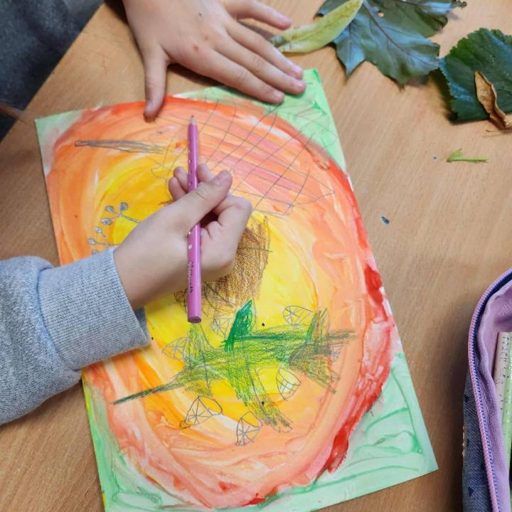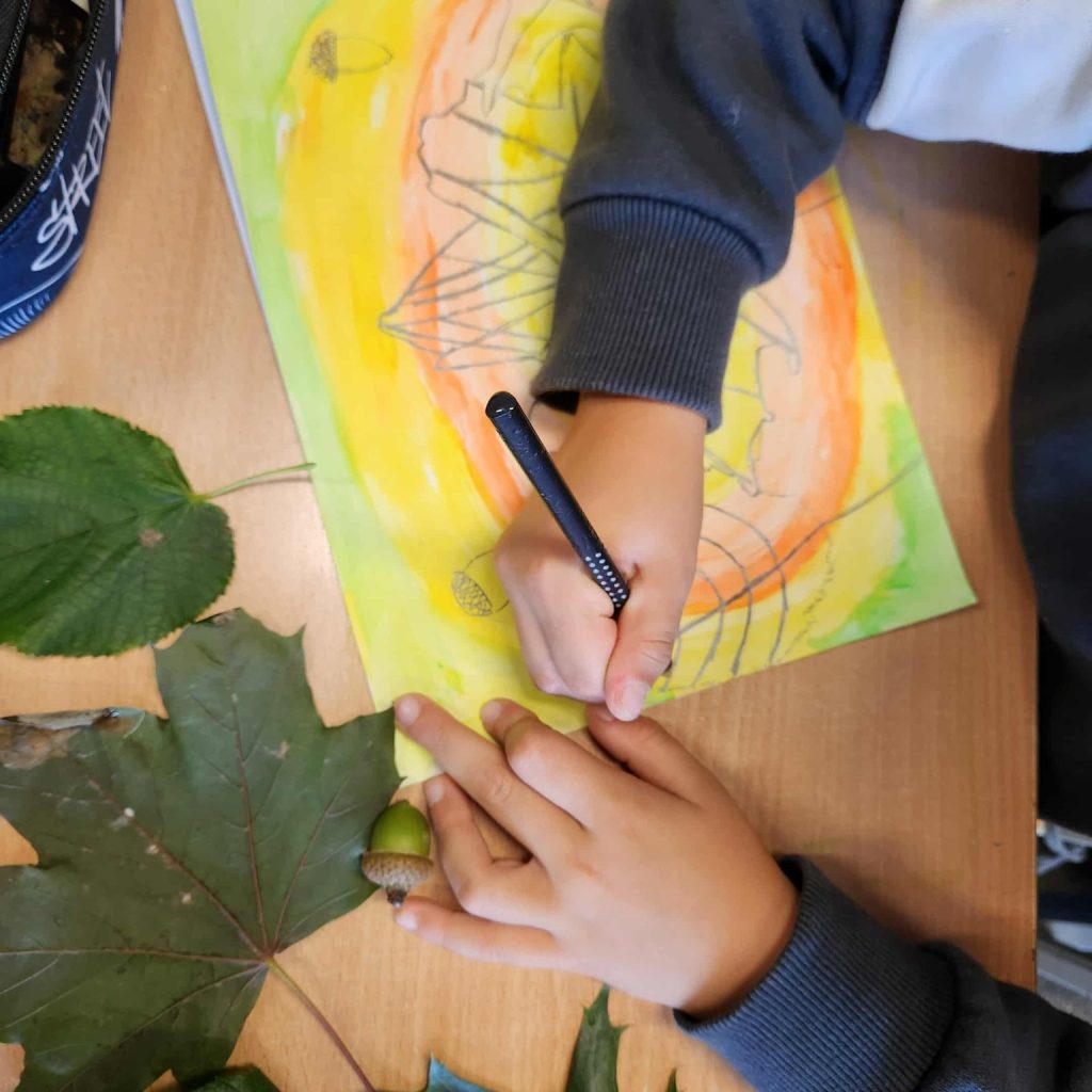 2025 m. spalio 10 d. 1 klasės mokiniams vyko integruota dailės ir gamtos mokslų pamoka „Medžių
