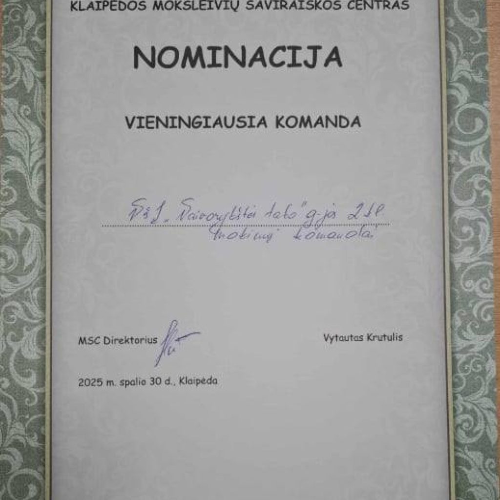 Mūsų mokinukų komanda buvo nominuota „Vieningiausios komandos“ titulu.